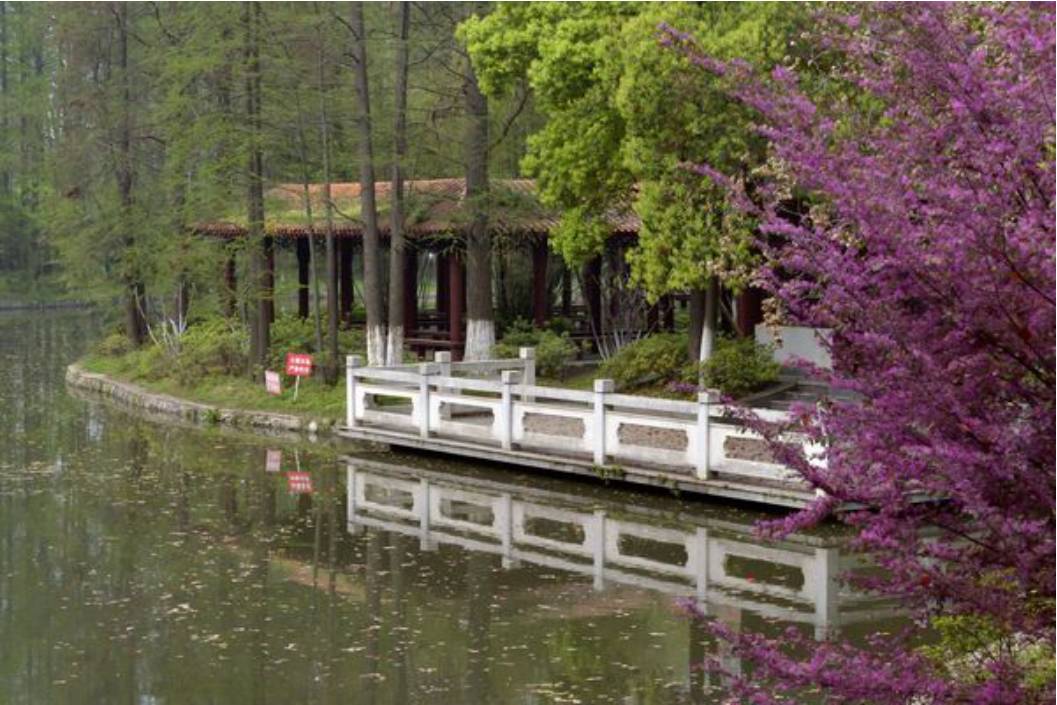 除了花卉的引进,青山公园还在景观建设方面下足了功夫。公园充分利用丽秋山、青山港等自然地形地貌,开挖人工湖,形成了山湖相依、廊桥亭榭、林泉石翠的传统生态景观。漫步在公园内,你可以看到蜿蜒曲折的小径,连接着各个景点;精致的亭台楼阁,错落有致地分布在湖边和山林间;清澈的湖水,倒映着岸边的绿树红花,宛如一幅美丽的山水画卷。